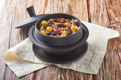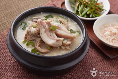 Abalone porridge is called the "King of porridge" in Korea. Thinly sliced abalone and soaked rice are boiled in water. Add abalone intestines and the porridge will turn a gentle yellow-green color with a unique flavor and a pleasantly bitter taste. Abalone caught from the sea near Jeju Island was offered to kings in the past. Abalone tastes best from April to June, whereas abalone caught in winter is not recommended. Abalone porridge is a popular energy-boosting food.