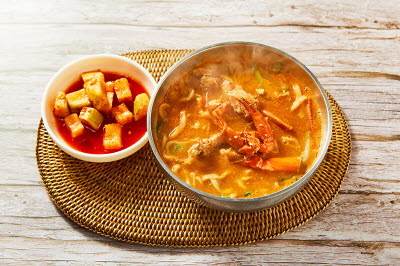 A whole medium-sized chicken is cleaned and boiled with garlic. The word baeksuk refers to fish or meat boiled in water without seasoning. The whole chicken is boiled without cutting, then the meat is shredded and eaten with salt. The dish is somewhat similar to ginseng chicken soup but whole chicken soup has less broth and the taste is much milder.