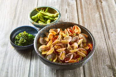 Flour batter is poured onto a hot oiled pan and scallions, squid, clams are layered on top and pan-fried. This pancake goes well with makgeolli (unrefined rice wine). Dip the pancake in soy sauce seasoned with onions or wild chives.