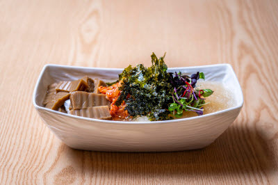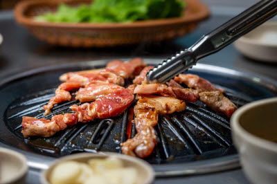 This is a specialty dish of Jeju Island that is served by placing the freshly steamed black pork meat from Jeju on a wooden cutting board and slicing it on the spot. The pork, with the grease removed, is light and savory. In particular, its meat is tender, while the fat is chewy.