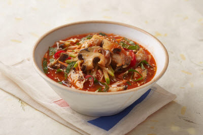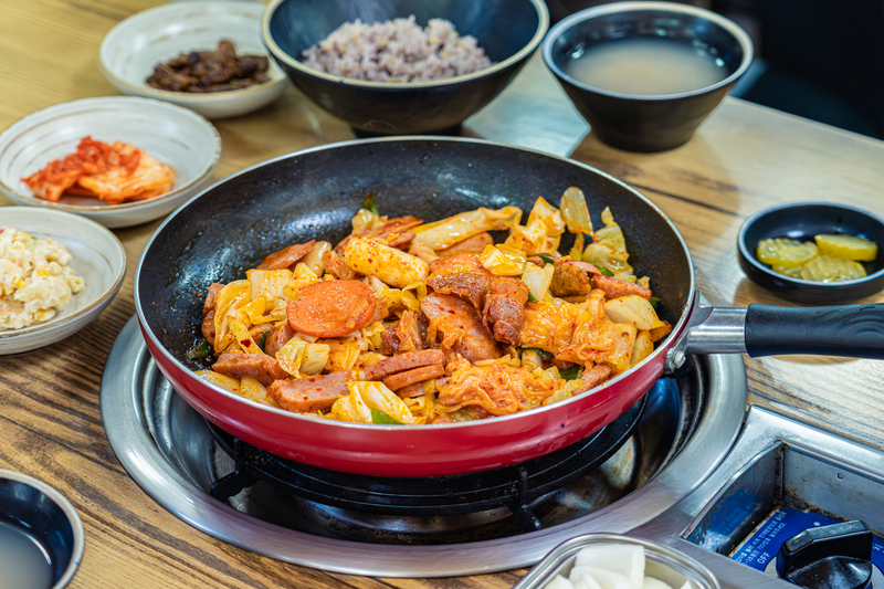 Pork is marinated with sweet sauce and grilled over briquette fire. The pork bulgogi grilled over the flame loses all oiliness and gains a subtle smoky flavor.