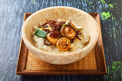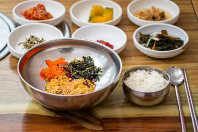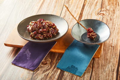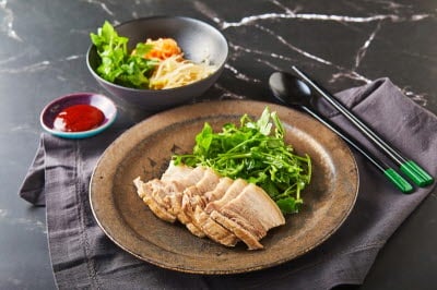 This dish involves mixing beef tartare with shredded vegetables in spicy cold noodles. The sweet, sour, and spicy broth; crisp vegetables; and light and tender meat create a delightful trio. Add chewy noodles to this combination to enjoy a hearty meal.