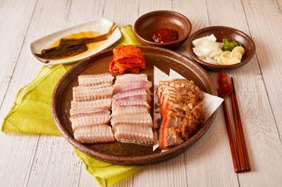 Chicken with its bones prepared like ribs is grilled on the spot over charcoal. Depending on your taste, you may choose between spicy red chili paste marinade or sweet soy sauce marinade. Because the chicken is grilled over direct fire, it’s important to avoid burning the meat. The flavor of the marinade and the smokiness and light flavor of the chicken meet to create an amazing combination. The dish is popular in Chuncheon, Gangwon State.