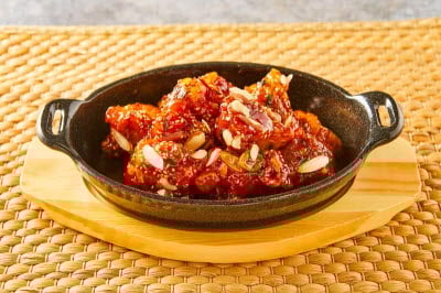 This is a spicy noodle soup with a broth seasoned with red spices. Beef cut into bite-size bits, loosely chopped green onion, and various vegetables swim in a spicy beef soup with well-cooked noodles. The dish is seasoned with red chili powder and spicy Cheongyang chili pepper, creating a perfect balance between the spicy and hot broth and the chewy noodles.