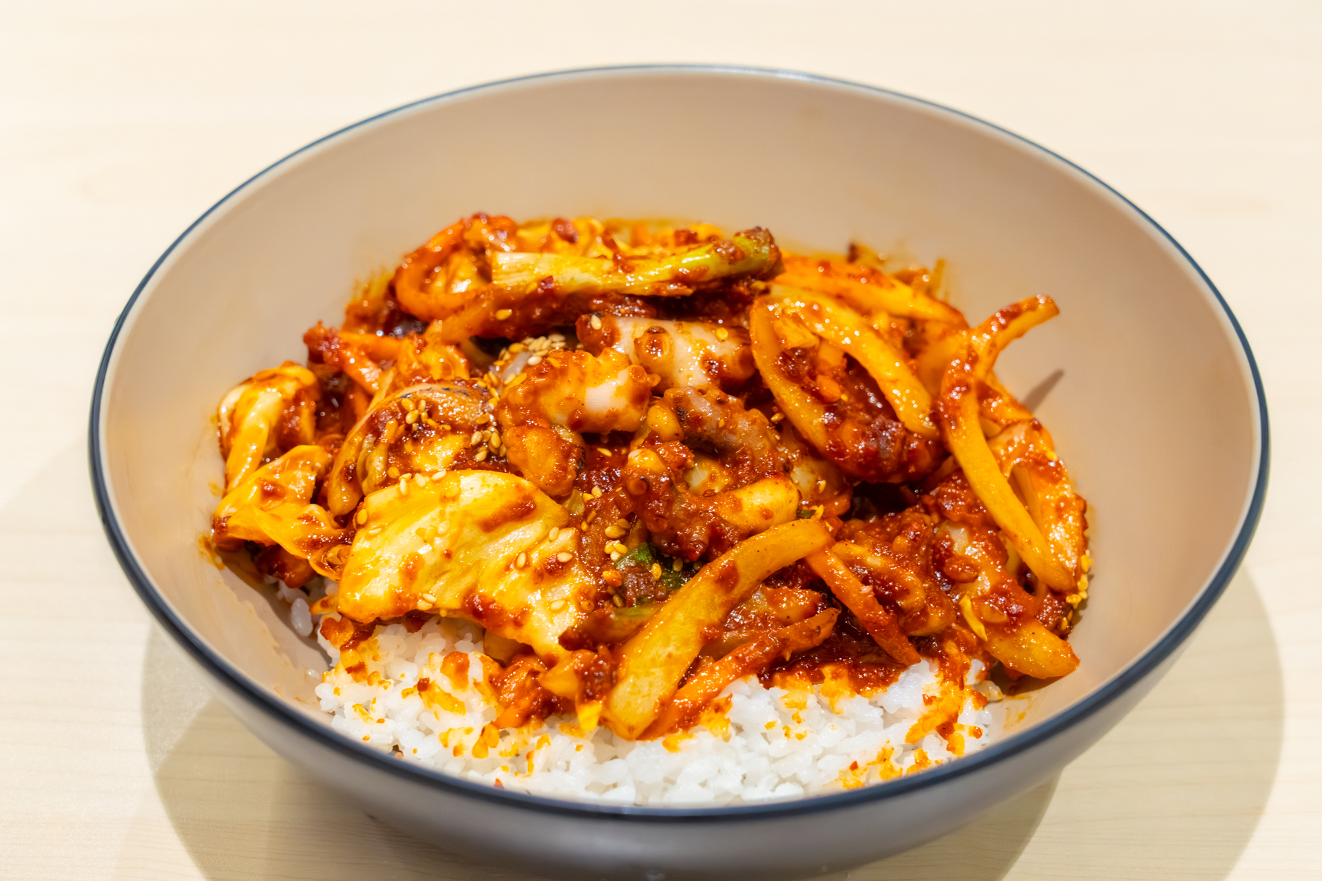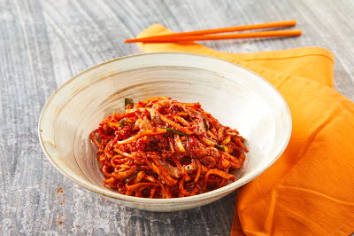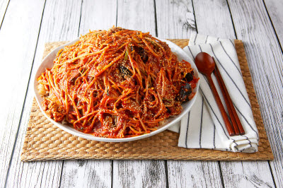 Salted sweet rice cake is rolled in grain powder and cut into bite-size pieces. This rice cake has been most popular among Korean people since the past. Depending on the ingredients you roll it in, the flavor changes, with the yellow bean powder coating being the most common. Because it’s made with 100% sweet rice powder, the texture is chewy.