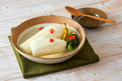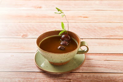 This cool beverage is a great way to enjoy the sweetness of ripe persimmon. A ripe persimmon is chilled in the refrigerator, then the peel and the seeds are removed. Ripe persimmon can also be blended with milk, or honey can be added for a sweeter beverage. Another way to make this beverage is to keep the ripe persimmon in the freezer, which creates a sweet and cool ice cream–like beverage when blended.