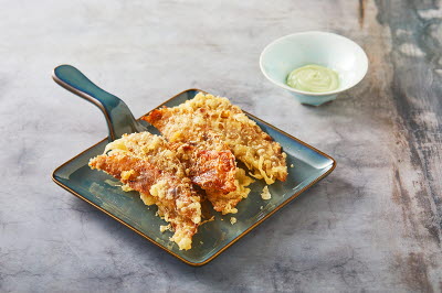This rice cake is made by boiling and mincing ramie leaves. Because it uses fully-grown ramie leaves, it distinguishes itself from the mugwort rice cake with a more intense flavor. Ramie leaves are boiled and squeezed dry, then chopped thinly. After mixing with rice powder and salt, these are kneaded into a dough with hot water. Then, the red beans are boiled and drained to make the red bean paste. Sugar is added to make the filling, and the dough is shaped into half-moon shapes, filled with red bean paste, steamed, and finished with a coat of sesame oil. The chewy rice cake gives way to sweet red bean paste filling.