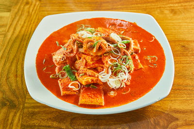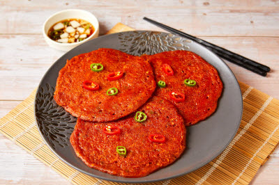 This rice cake is colored with five natural dyes sourced from gardenia, omija, grapes, mugwort, and the like, which are, in turn, mixed into the dough and kneaded with hot water. The filling often features chestnuts, young soybeans, or ground sesame seeds mixed with sugar. Unlike the half-moon rice cakes made for Chuseok, these rice cakes are made to be small, colorful, and dainty for special and happy occasions. One such example is the feast on the 100th day after the baby’s birth, while another in the past was to commemorate the completion of each book used to teach the child in the Village School when the rice cakes were made to be shared with others.
