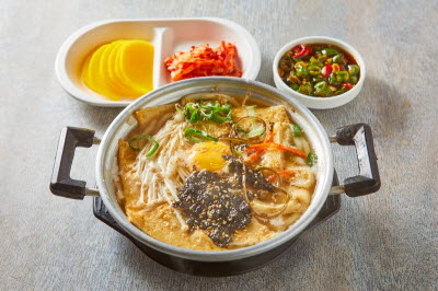 This dish, also known as kongbugak, is a folk dish from Daejeon. Black soybeans are washed and left soaked with three times the water for more than eight hours. Soaked beans are tossed in dried sweet rice powder, transferred to a steamer with cheesecloth, then steamed for about 10 minutes. Once the sweet rice powder is cooked, it is left to cool, tossed in sweet rice powder again to create a white coating, and dried under the sun. Finally, it is deep-fried in oil quickly and mixed with soy sauce and starch syrup to create this crispy and savory side dish.
