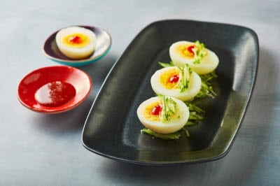 This cool and refreshing beverage is made with thinly sliced citrus peel and pear, pomegranate, and citrus juice. Citrus is grown widely in Namhae, Gyeongsangnam-do, and harvested in November. It has three times the vitamin C content of lemons, so it helps boost the immune system and prevent colds. This eminently presentable dish is made by alternating yellow citrus peel and white pear in a bowl, mixing honeyed water with citrus juice, and floating the pomegranate seeds on top. It is a colorful and dainty bowl that pleases the eyes before the taste buds. The drink itself is a refreshing harmony of the tangy and bitter notes of citrus with crunchy and cool pear and fresh notes from the pomegranate seeds.