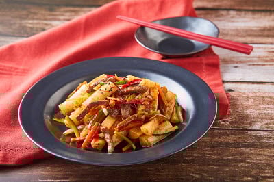 This menu was developed by the city of Yeongju, Gyeongsangbuk-do, using the specialty agricultural products of the region. Restaurants in Yeongju serve this dish made from golden oak mushrooms and five kinds of vegetables harvested in the region. The rice is steamed with burdock root and golden oak mushrooms and is topped with slightly stir-fried golden oak mushrooms, carrots, pumpkin, and bean sprouts, with thin slices of Punggi ginseng crowning the bowl. Add a spoonful of soybean paste jjigae and sauce made with chopped extra spicy chili pepper, mix as needed, and take a spoonful of a refreshing blast of flavor. The dish is complemented with a fragrant side dish made from the region’s golden oak mushrooms such as pan-fried battered golden oak mushrooms and pickled golden oak mushrooms. Golden oak mushrooms are well-known for their health benefits, so one truly feels healthy after eating them to one’s heart’s content.