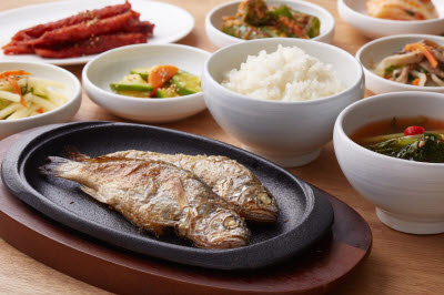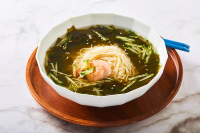 Hwangpomuk is a folk dish of Jeonbuk State, particularly serving as an essential element of the toppings used in Jeonju bibimbap and providing a splash of yellow on the bowl. Also known as yellow cheongpomuk (mung bean jelly), it is made by mixing mung bean starch with gardenia seed water, which colors it yellow. Hull the mung beans and grind them finely with water, sieve the mixture, and let the starch settle. Add five cups of gardenia seed water to a cup of starch, and bring to a boil while stirring. Once the starch starts to thicken, salt as needed and let cool in a bowl. Slice flatly, then serve with sauce. These jellies are fluffy and springy, seemingly melting way easily in one’s mouth.