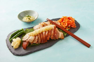 A popular menu at a restaurant in Ikseon-dong, Jongno-gu, Seoul. It is a dish served with sweet and sour water parsley salad as a side to be eaten with pan-fried battered beef. Pan-fried battered beef uses the non-greasy eye of round cut. Pan-fried battered beef is prepared by seasoning thin slices of beef with salt then covering the meat with flour and egg water in turn before pan-frying in oil. The water parsley salad complements the pan-fried beef. Alternatives to water parsley as a side are chamnamul, chives, and seasoned spinach. However, the combination of pan-fried battered beef with water parsley salad is the most well-known.
