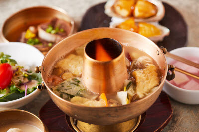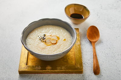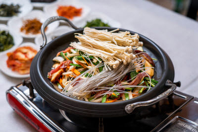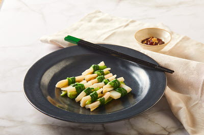 A rice cake baked in oil with flower petals on glutinous rice flour dough. Based on seasonal customs, azalea flowers are picked and fried on March 3 of the lunar calendar. Aside from azaleas, it is also made of pear flowers, roses, and chrysanthemums, and if there are no flowers, water parsley leaves, mugwort leaves, manna lichen, and jujube are fried in the shape of flowers on the dough. It is a lovely food where you can feel both the joy of seeing flowers and the joy of eating. Lightly baked hwajeon is eaten by dipping it in honey or sprinkling it with sugar. A similar dish that is often eaten around Iksan, Jeonbuk State is seopjeon. While it is similar to hwajeon in its shape and form, seopjeon uses soju in the dough.