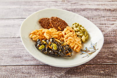 This traditional Korean sweet confectionery is made by making a dough with flour and ginger juice, rolling it out, cutting it into rectangular pieces, then scoring and twisting the dough before deep-frying. One can also use spinach, omija, gardenia, and other natural ingredients to color the dough. After deep-frying, fried twist cookies are dipped into a sweet syrup and sprinkled with powdered pine nuts. These cookies are crispy and fragrant, thanks to the ginger and cinnamon used in the dough. They are also very presentable, especially when colored with natural ingredients, so these cookies are popular among valued guests and children. Its Korean name, “maejakgwa,” uses the Sino-Korean characters for plum and sparrow, as its shape is said to resemble how a sparrow perches on a plum tree.
