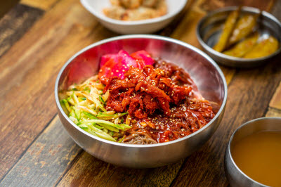 Sides for meat orders is a dining style where customers purchase meat from a market and bring it to a restaurant, paying only a service fee for the table setting and side dishes provided by the restaurant. The restaurant provides a grill, leafy vegetables for wraps, kimchi, pickles, and sometimes a stew. Buying meat at the market can be cheaper than ordering it directly from the restaurant. Recently, butcher-restaurants have become common, where customers can select meat at market prices and have it grilled immediately on-site, making it more affordable and convenient than typical restaurants.